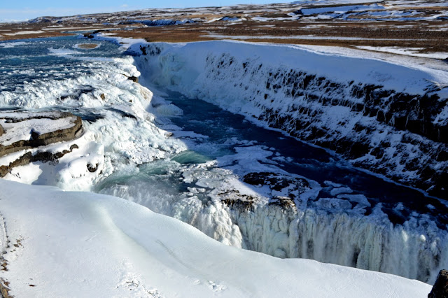 Todas as paisagens são impressionantes neste país nórdico, mas existe uma cascata que me deixou completamente deslumbrada. A Gullfoss que significa "Cascata de Ouro" fica localizada num desfiladeiro do Rio Hvítá. Com 32 metros de altura e 70 metros de largura, esta beleza natural transporta água proveniente do glaciar Langjokull e faz parte do Círculo Dourado.